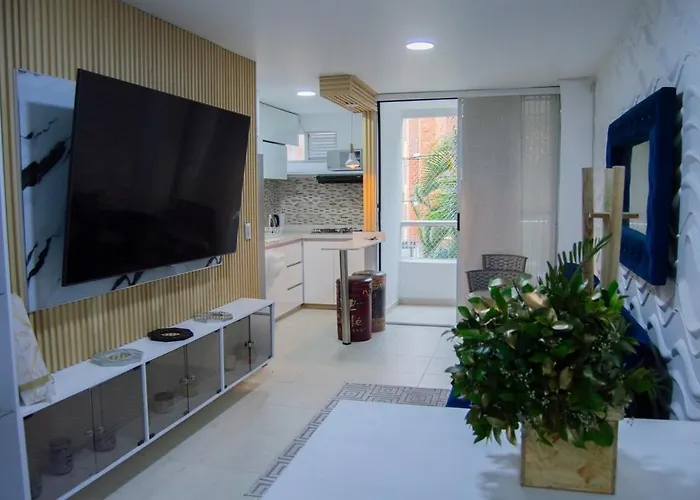 W hotelu Apartament Comodo Y Moderno Apartamento En Medellin pokoje wyposażone są w balkon i telewizję satelitarną.